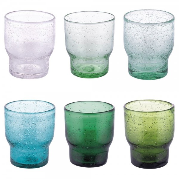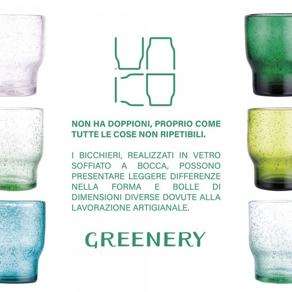 Set 6 bicchieri acqua Greenery di Villa D'Este in pasta di vetro con lavorazione artigianale effetto bubble.Ogni bicchiere ha le sfumature del verde.