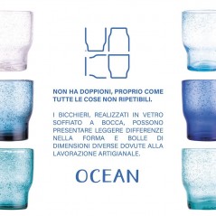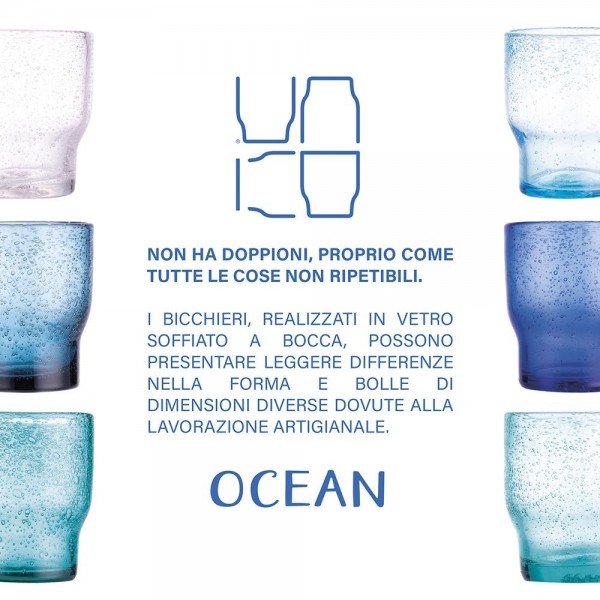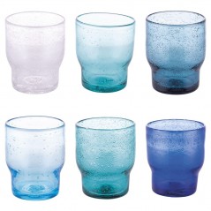 Set 6 bicchieri acqua Ocean di Villa D'Este in pasta di vetro con lavorazione artigianale effetto bubble.Ogni bicchiere ha le sfumature del blu.