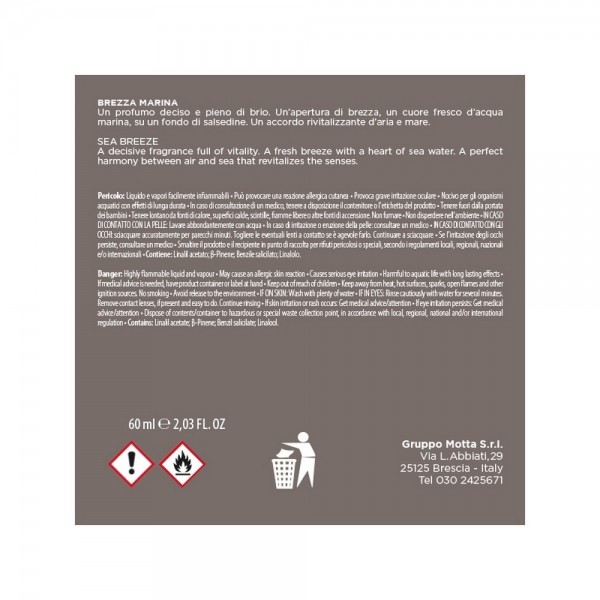 Un profumo deciso e pieno di brio. Un’apertura di brezza, un cuore fresco d’acqua marina, su un fondo di salsedine. Un accordo rivitalizzante d’aria e mare.