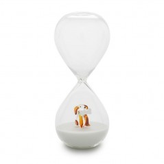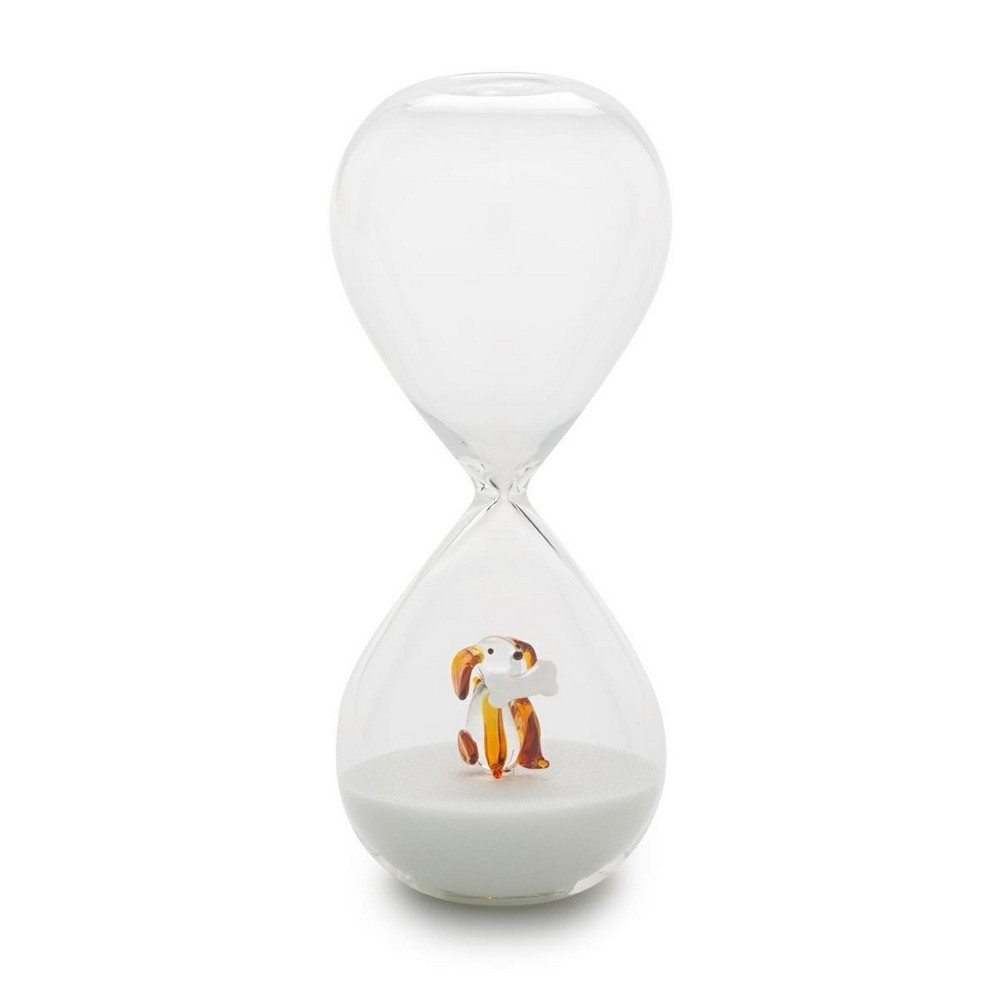 Simpatica clessidra da 15 minuti firmata Henriette, in vetro borosilicato trasparente e compatto. Al suo interno, la sabbia bianca scorre avvolgendo una tenera decorazione a forma di cane, sospesa nel cuore della clessidra. Il suo design affettuoso e originale è perfetto per aggiungere un tocco decorativo agli ambienti domestici o come pensiero speciale per gli amanti degli animali.
