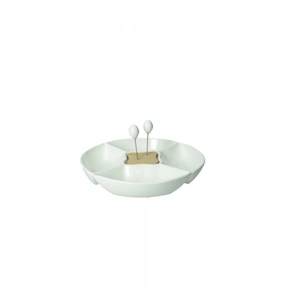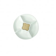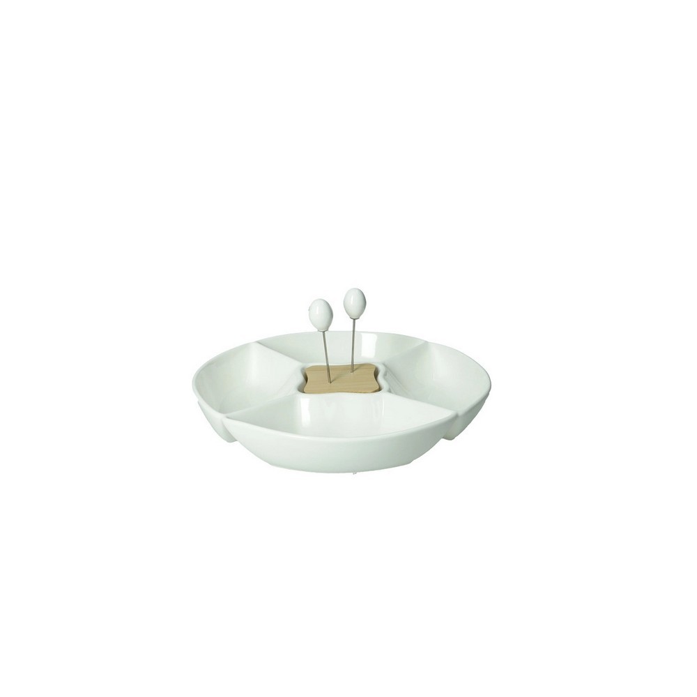 L'antipastiera Classic firmata Brandani, in elegante porcellana bianca con due forchettine in acciaio inox, è la scelta perfetta per chi desidera servire antipasti e finger food. Il design a spicchi consente di presentare diverse pietanze in un unico piatto mantenendo ordine e armonia visiva.
