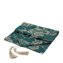 Trasforma la tua tavola in un’opera d’arte con questo raffinato runner in tessuto jacquard di colore verde di Hervit. Il design è impreziosito da un rilievo floreale dorato che cattura la luce in modo sublime, creando un effetto di profondità e lusso. Le nappe decorative, in tono con il design, aggiungono un tocco finale di eleganza e raffinatezza.
