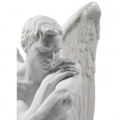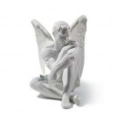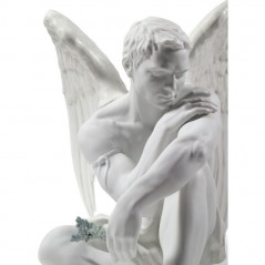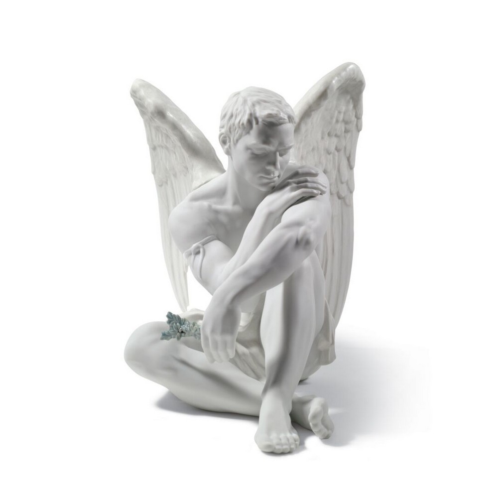 Statua Lladrò una figura Maschile, serena, potente però tranquilla. Questo Angelo che porta in mano un Ramoscello d'ulivo è un simbolo protettivo, maestoso e spirituale. Realizzato in porcellana bianca opaca e decorato con colori tenui, si distingue per la sua perfetta modellazione.
