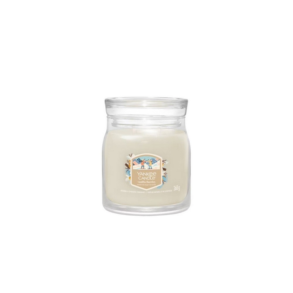 Candela media Yankee Candle Vanilla Flurries, è una fragranza Dolce e Speziata. I soffici fiocchi di neve non sono mai stati così invitanti: sentori di cristalli di vaniglia zuccherata, ambra dolce e vetiver vi avvolgono come una coperta di cashmere.La candela a giara media a due stoppini e un mix di altissima qualità di cera di soia il quale fornisce una stupenda fragranza a lunga durata e una meravigliosa atmosfera.