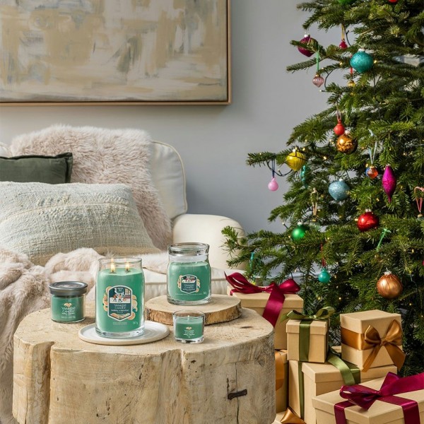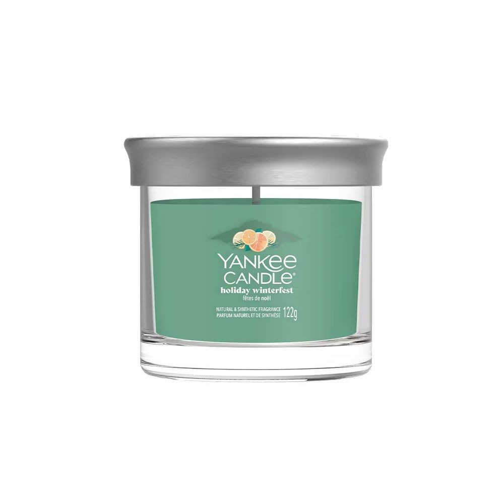 Candela Tumbler piccola Yankee Candle Holiday Winterfest una fragranza ispirata agli agrumi frizzanti, alle erbe fresche e al pino riempiono l'aria di atmosfera da festa.Una nuova interpretazione della nostra forma a bicchiere presenta un coperchio in latta spazzolata che si adatta perfettamente sotto la base per fungere da sottobicchiere. Il bicchiere piccolo a stoppino singolo è realizzato con la stessa miscela di cera di soia di alta qualità delle nostre candele.