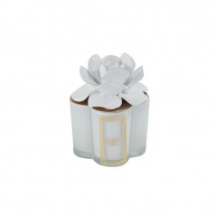 La deliziosa Candela con rosa in ceramica di colore bianco in vasetto quadrifoglio di vetro effetto lucido è perfetta per profumare e creare atmosfere magiche.