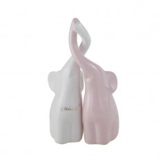 Coppia Elefanti Intrecciati Bianco e Rosa Melaverde