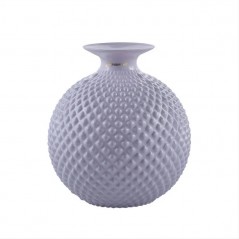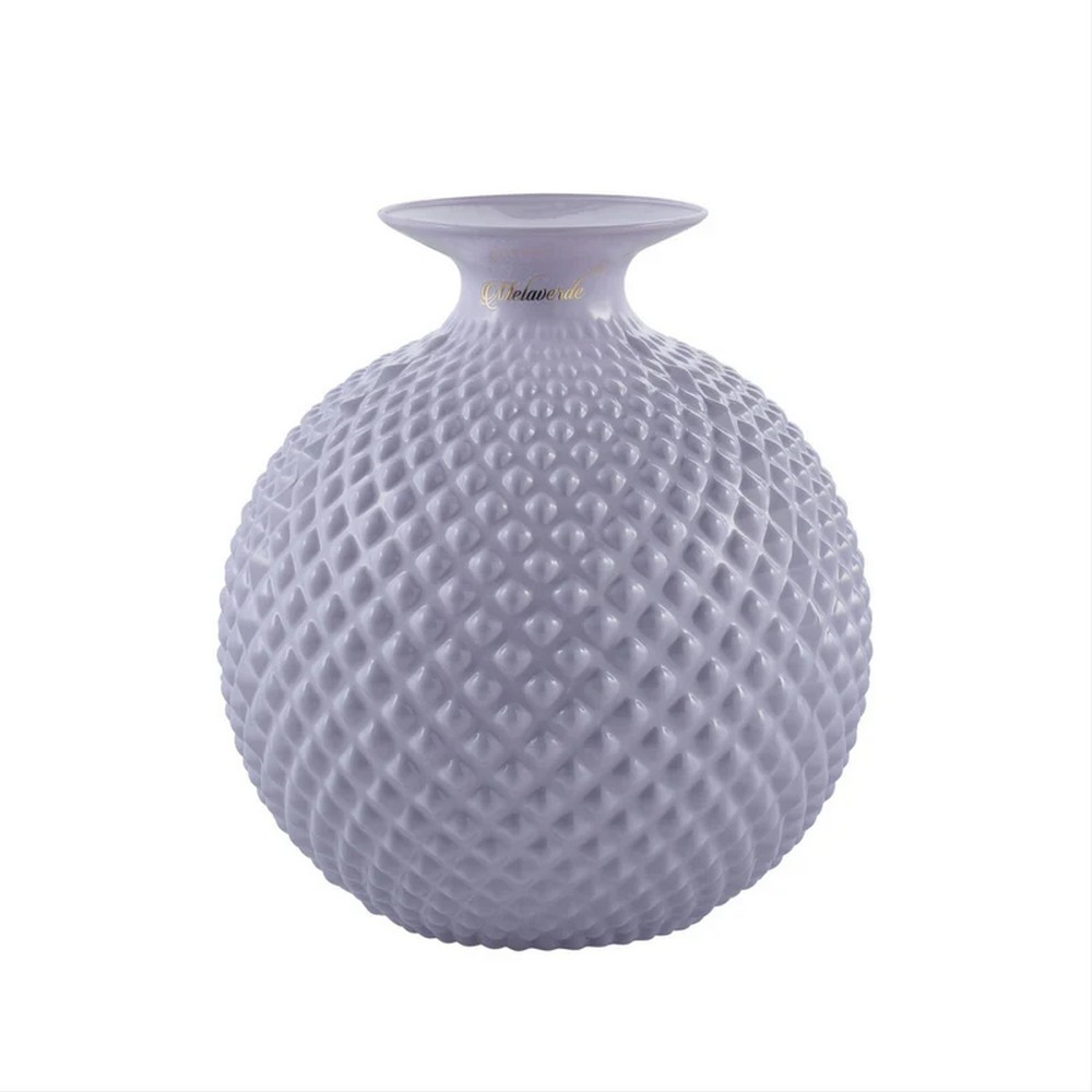 Un oggetto di design raffinato e senza tempo. Il Vaso Javier di Melaverde si distingue per la sua elegante forma sferica e la superficie a rilievo a piccoli pois che catturano la luce, creando giochi di riflessi unici. La finitura color lilla lucido aggiunge un tocco sofisticato, capace di impreziosire qualsiasi ambiente, dal classico al contemporaneo.