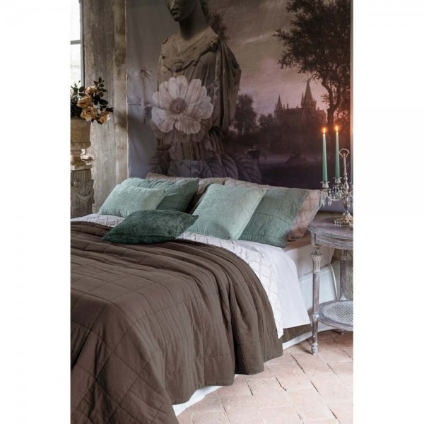 Trapunta matrimoniale nel colore fango realizzata in morbido cotone con finitura stone washed. Collezione Nuvola di Blanc MariClo'. Questa trapnta presenta un aspetto volutamente vissuto e leggermente sbiadito, che dona un tocco vintage e contemporaneo alla tua camera da letto.