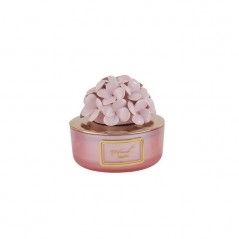 La deliziosa Candela con ortensie in ceramica di Capodimonte di colore rosa in vasetto tondo di vetro effetto lucido è perfetta per profumare e creare atmosfere magiche.