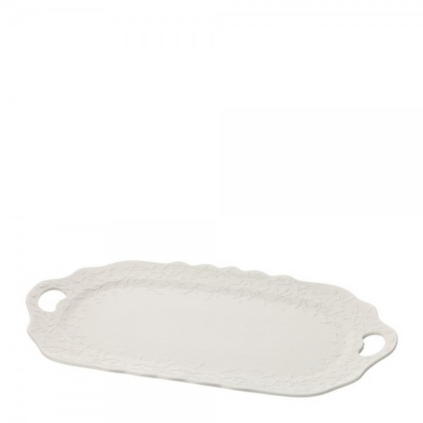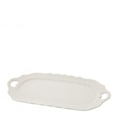 Il Vassoio ovale in porcellana della linea Romance di Hervit è un oggetto elegante e raffinato, caratterizzato da una finitura bianca con delicati rilievi di roselline tono su tono, che richiamano uno stile romantico e senza tempo. Le impugnature sui lati rendono il vassoio pratico da portare in tavola per servire antipasti, dolci o frutta.