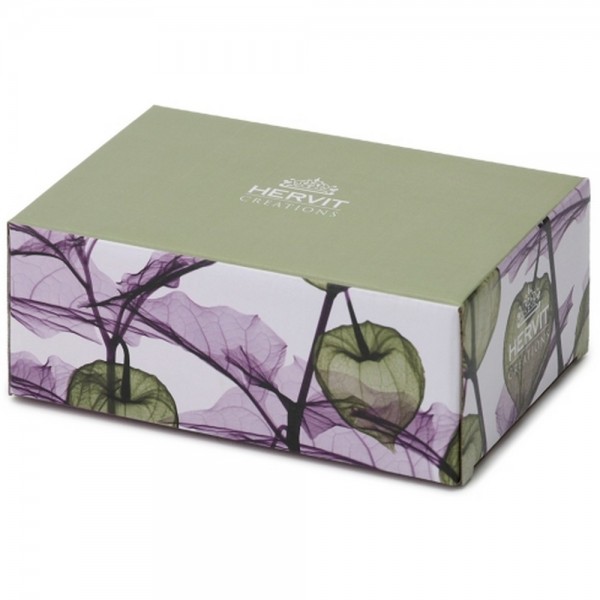Elegante e funzionale, questo cofanetto Hervit della linea Alkekengi verde è realizzato in legno con fondo a specchio, perfetto per custodire gioielli, piccoli accessori o ricordi preziosi. L’interno in velluto nero con divisori lo rende pratico e ordinato, mentre il decoro Alkekengi dona un tocco raffinato e decorativo.