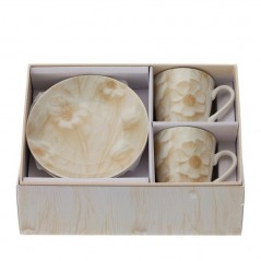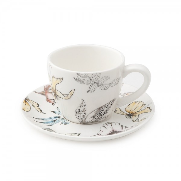 Un set elegante e allegro, perfetto per rendere speciale la pausa caffè. Questo box da 2 tazzine da caffè con piattino, decorate con raffinati fiori crema della linea Canvas è la nuova proposta di Hervit.
