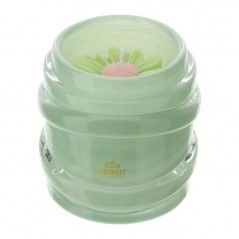 Elegante e delicata, questa candela profumata Daisy Loop di Hervit è racchiusa in un raffinato contenitore in vetro verde, impreziosita da una margherita centrale in rilievo che dona un tocco romantico e decorativo. La profumazione Oud avvolge l’ambiente con una nota piacevole e ricercata.