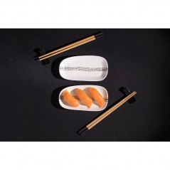 Rendi il tuo evento ancora più speciale con il nostro set sushi per due persone di Gli Amici di Cuorematto, realizzato in elegante ceramica nei raffinati colori nero e bianco, il nostro set sushi è un simbolo di eleganza e originalità.