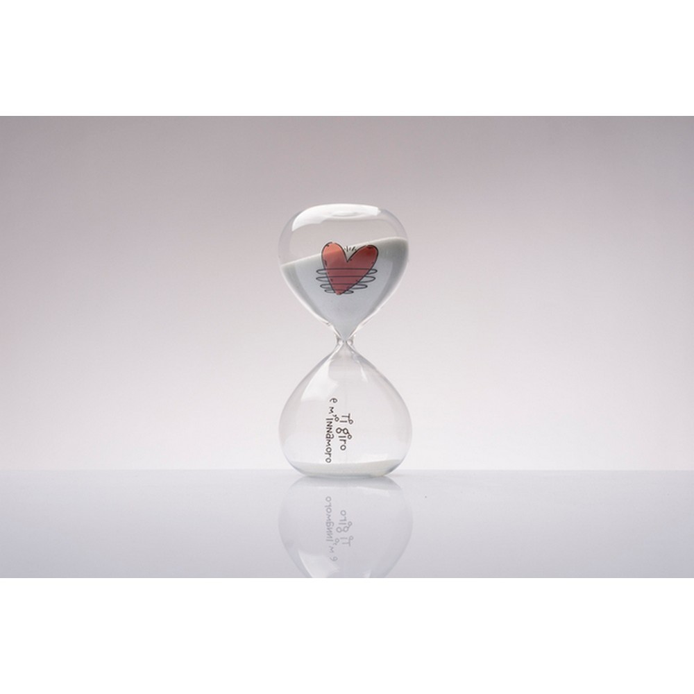 Questa clessidra in vetro firmata Gli Amici di Cuorematto è un oggetto elegante e ricco di significato, ideale per celebrare momenti importanti. Il design trasparente è impreziosito dall’illustrazione di un cuore, simbolo di amore e la frase “ti giro e m’innamoro“.