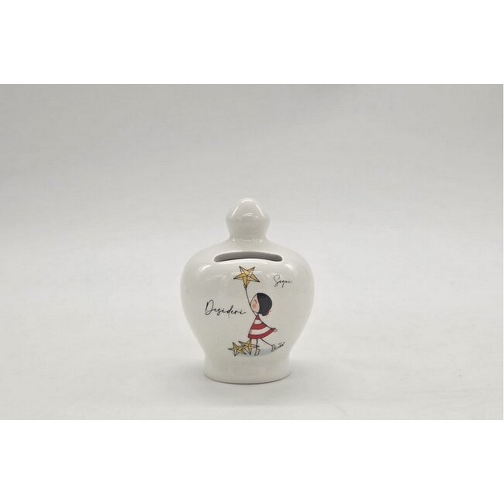 Bellissimo salvadanaio con disegni e scritte, inclusa scatola regalo in coordinato.
