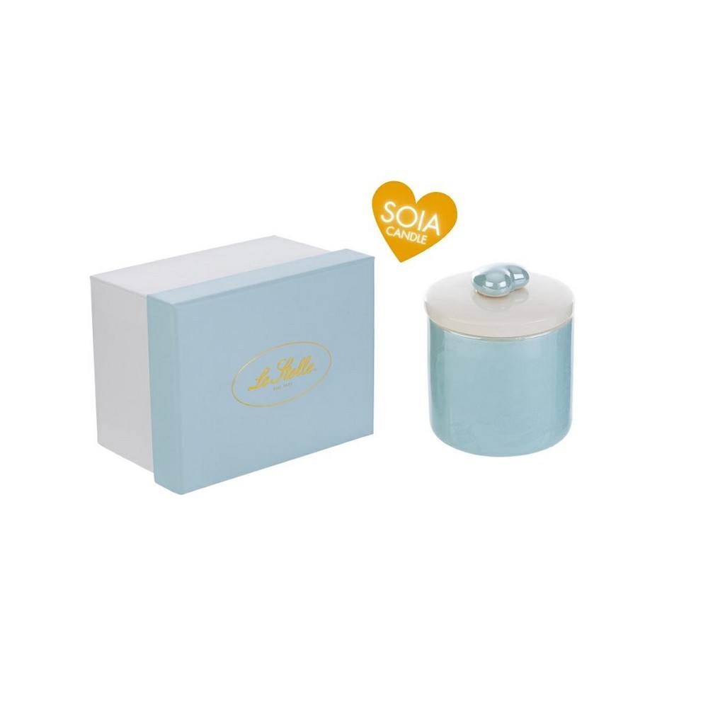 Scatola Porcellana Celeste Con Candela di Soia