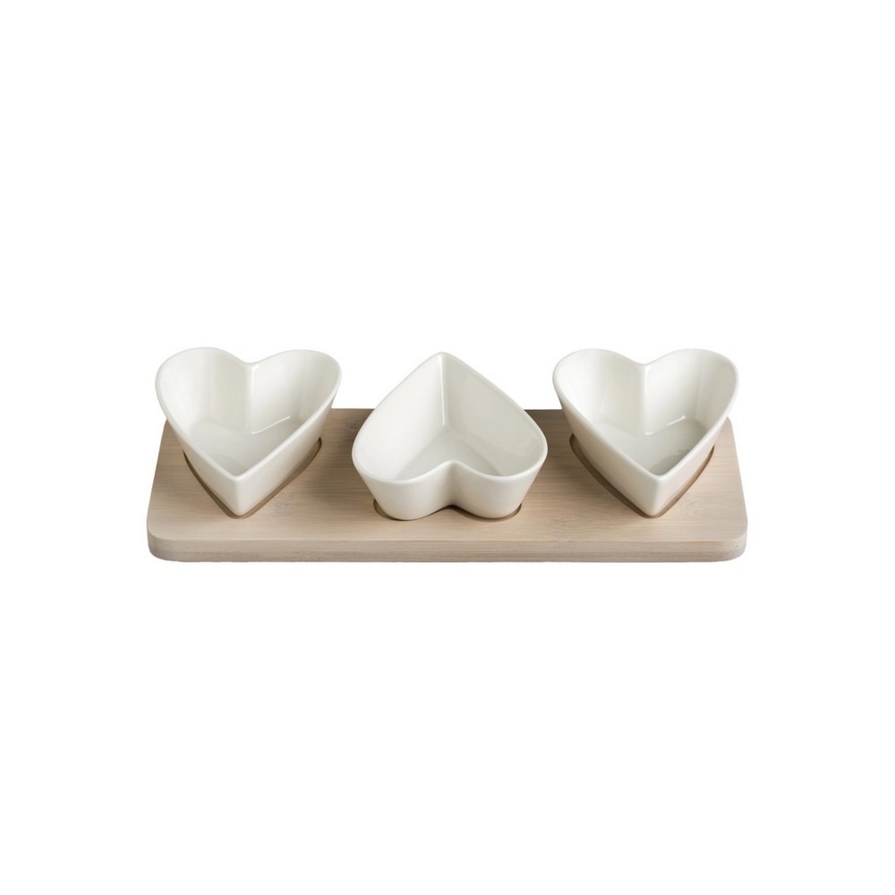 Uno degli aspetti distintivi delle collezioni Brandani in porcellana e bamboo è certamente lunione tra antico e moderno: un mix di due differenti stili il cui studiato legame crea oggetti unici ed esclusivi che ancora oggi trionfano sulle vostre tavole. Il nuovo portassaggi in porcellana si compone di tre graziose ciotoline a forma di cuore che poggiano sulla loro base in bamboo.