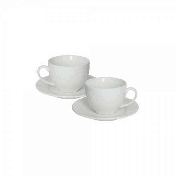La collezione delizie si allarga, accogliendo sulla tavola nuovi ed eleganti accessori! Un set candido ed aggraziato, quello dei già noti piatti art. 5275 che da oggi decora il nostro living space arricchito da tazze thé corredate di piattini!!disponibili in set 2 pezzi, il decoro floreale in rilievo delle tazze da thé delizie riflette la purezza della porcellana new bone di cui si compongono trionfando di raffinatezza: perfette per cene di gala o momenti di fascinosa quotidianità.
