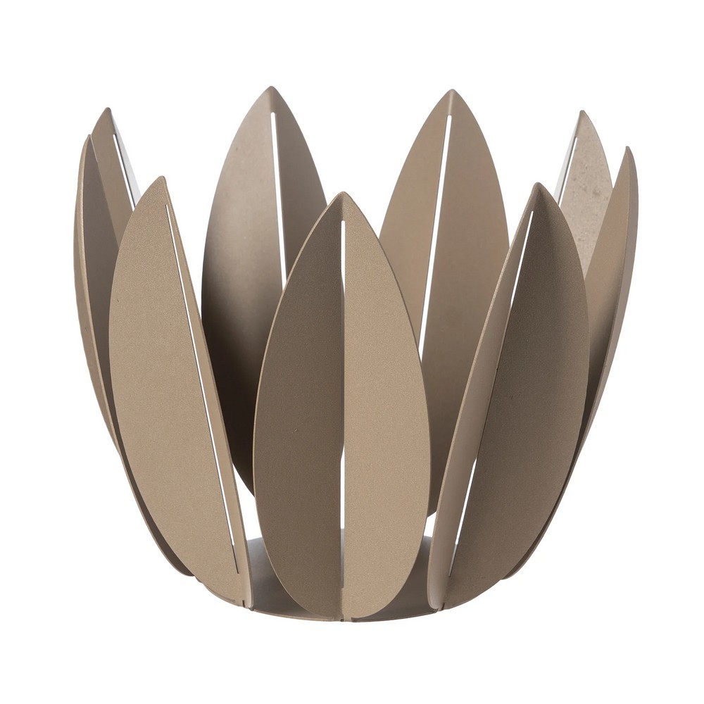 Questa agrumiera, ispirata alle foglie di fico, presenta un design unico. Le foglie, dalla forma allungata, sono caratterizzate da una linea centrale traforata che divide la foglia in due parti, con un'inclinazione verso l'esterno. Questo dettaglio non solo conferisce un tocco estetico distintivo, ma migliora anche la funzionalità dell'agrumiera consentendo di contenere una grande quantità di frutta.