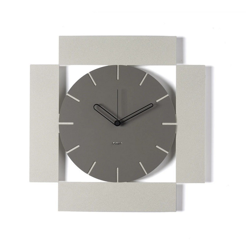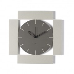 L'orologio da parete Radical è un perfetto esempio di equilibrio tra minimalismo e rigore geometrico. Al centro della composizione si trova un quadrante rotondo, essenziale e ben leggibile, segnato da linee sottili che indicano il passare delle ore. Ciò che rende Radical davvero unico è la struttura che lo circonda: quattro rettangoli disposti in modo speculare sui lati del quadrante, come a incastonarlo, andando a formare una cornice quadrata perfettamente simmetrica.