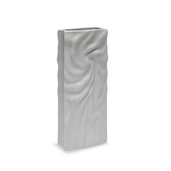 Vaso decorativo Soffi Di Colore di AD in vetro color bianco, caratterizzato da una forma elegante e armoniosa con lavorazione a coste morbide che valorizzano la luce e le sfumature del colore.