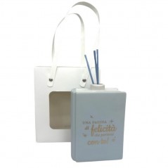 Il Libro Profumatore celeste con scritta della collezione Ad Emozioni è una bomboniera elegante e significativa, pensata per accompagnare con stile i momenti più importanti della vita, come battesimo, prima comunione e cresima. Realizzato in ceramica smaltata di qualità, presenta tre scritte assortite che rendono ogni pezzo unico. Incluso di bastoncini e scatola