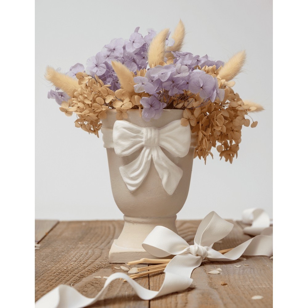 Vaso Cemento Beige con Fiori e Fiocco Flake AD