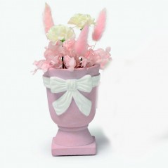 Vaso Cemento Rosa con Fiori e Fiocco Flake AD