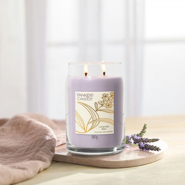Candela grande Yankee Candle Lavander Bliss,è una fragranza floreale.Rilassati in una spa tranquilla, dove soffici asciugamani, cascate mormoranti e trattamenti profumati accarezzano i sensi. Note di orchidea, lavanda e legno di cedro catturano questa atmosfera serena, perfetta per prolungare i momenti di benessere.Questa è la più grande candela nella gamma realizzata con due stoppini e un mix di altissima qualità di cera di soia il quale fornisce una stupenda fragranza a lunga durata e una meravigliosa atmosfera.