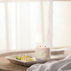 Candela media Yankee Candle Slow Blooms, è una fragranza legnosa.Stai passeggiando in un giardino tranquillo, dove la luce soffusa e la pioggia delicata fanno sbocciare i fiori. Note leggere di sandalo, gelsomino e salice accompagnano momenti di assoluto relax.La candela a giara media a due stoppini e un mix di altissima qualità di cera di soia il quale fornisce una stupenda fragranza a lunga durata e una meravigliosa atmosfera.