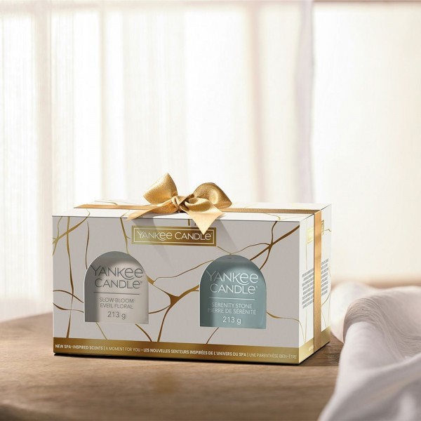 Due eleganti candele tumbler pensate per trasformare i momenti più semplici in rituali di vero comfort.Include 2 candele tumbler profumate in Serenity Stone e Slow Bloom, rifinite con un elegante nastro.