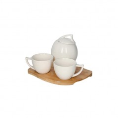 Il coffee set Brandani si compone di due tazzine da caffè, una zuccheriera ed un elegante vassoietto in bamboo. Un set raffinato e funzionale, pensato per chi ama prendersi una pausa all’insegna dello stile e della convivialità, curando ogni dettaglio della tavola. Linee armoniose e materiali di qualità si incontrano in un coffee set dal design equilibrato e accogliente. Le tazzine in porcellana valorizzano l’aroma del caffè, mentre la zuccheriera coordinata completa il servizio con discreta eleganza. Il vassoietto in bamboo naturale aggiunge un tocco caldo e contemporaneo, creando un piacevole contrasto con la porcellana.