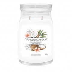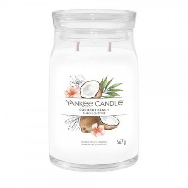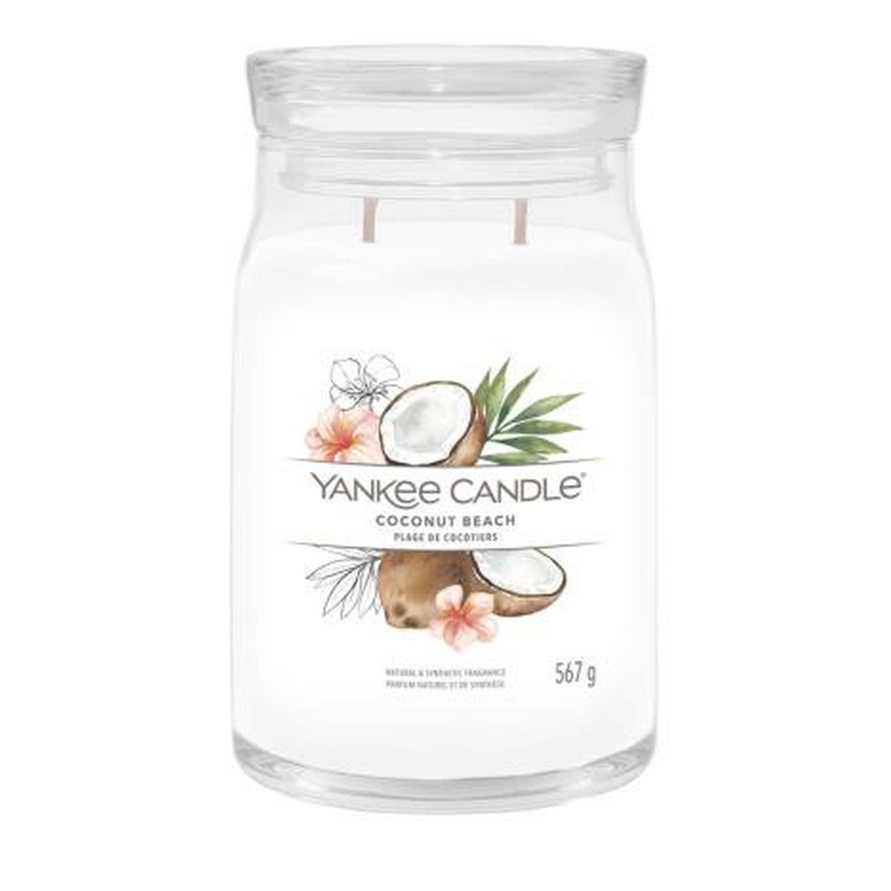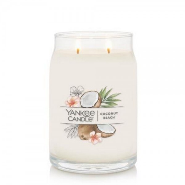 Candela grande Yankee Candle Coconut Beach,è una fragranza Fruttata.Profumi dai tropici: calde note che ricordano il cocco si combinano con aromi ispirati all'ananas e alla vaniglia.Questa è la più grande candela nella gamma realizzata con due stoppini e un mix di altissima qualità di cera di soia il quale fornisce una stupenda fragranza a lunga durata e una meravigliosa atmosfera.
