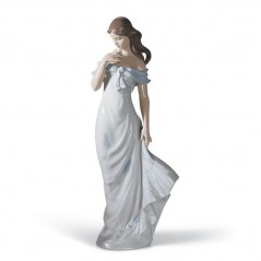 Statua Lladrò Il Sussurro dei Fiori raffigura una donna con dei fiori tra le mani, guardandola si sente l'aroma dei fiori e la leggera brezza del prato tra i suoi capelli.Un oggetto in porcellana lucida, decorata con i classici colori pastello Lladró.
