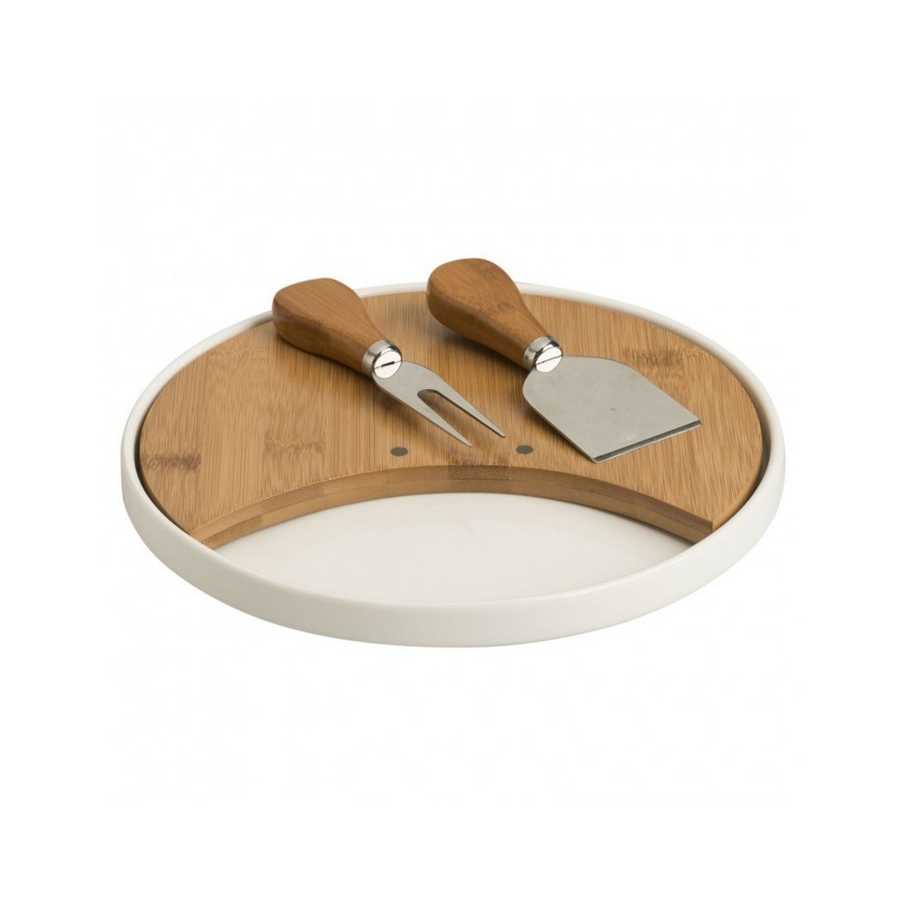 Il nuovo tagliere Brandani, dalla classica forma rotonda è un sorprendente due in uno: il raffinato vassoio in porcellana racchiude infatti un robusto ed estraibile tagliere in bamboo, la cui particolare forma lascia al suo fianco un comodo spazio vuoto dalle più svariate utilità. Dotato di due pratici strumenti per il taglio del formaggio, il tagliere porcellana e bamboo sarà il protagonista indiscusso della tua tavola, tra i plausi dei commensali e l’orgoglio del padrone di casa.