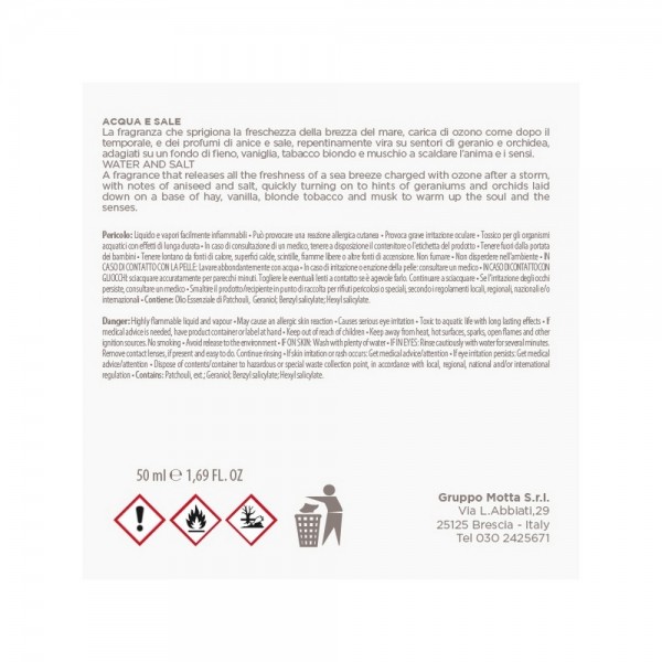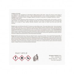 La fragranza sprigiona la freschezza della brezza del mare carica di ozono e dei profumi di anice e sale, repentinamente vira su sentori di geranio e orchidea adagiati su un fondo di fieno, vaniglia, tabacco biondo e muschio.