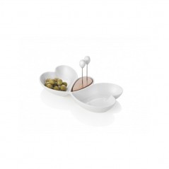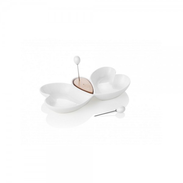 L’antipastiera cuor di butterfly firmata Brandani è ideale per abbellire la tavola e per servire salatini e stuzzichini ai propri ospiti. Fornita di due forchettine in acciaio inox è realizzata nel pregiato materiale della porcellana ed è rifinita con il bamboo.
