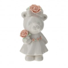 Orsetta Porcellana Bianca con Roselline Rosa Hervit