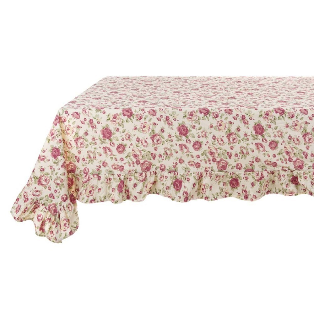 Tovaglia della collezione Felicità di Blanc MariClo' realizzata in cotone con gala (10cm)su tutti i lati. La fantasia impresiosita da deliziosi fiorellini nei toni dei rosa e rosa antico su fondo color panna per un perfetto stile country chic.