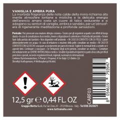 VANIGLIA E AMBRA PURA La morbida fragranza delle note calde della mirra, richiama alla mente atmosfere lontane e mistiche, e la delicata energia dell’arancio amaro, svelano un cuore di talco seducente e si adagiano su sentori di vaniglia, ambra e sandalo, per un’atmosfera di rigenerante meditazione e profonde sensazioni.