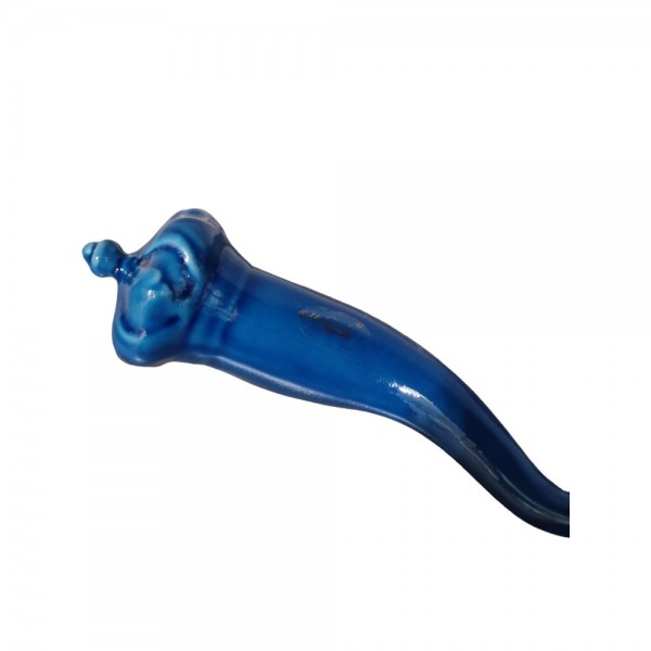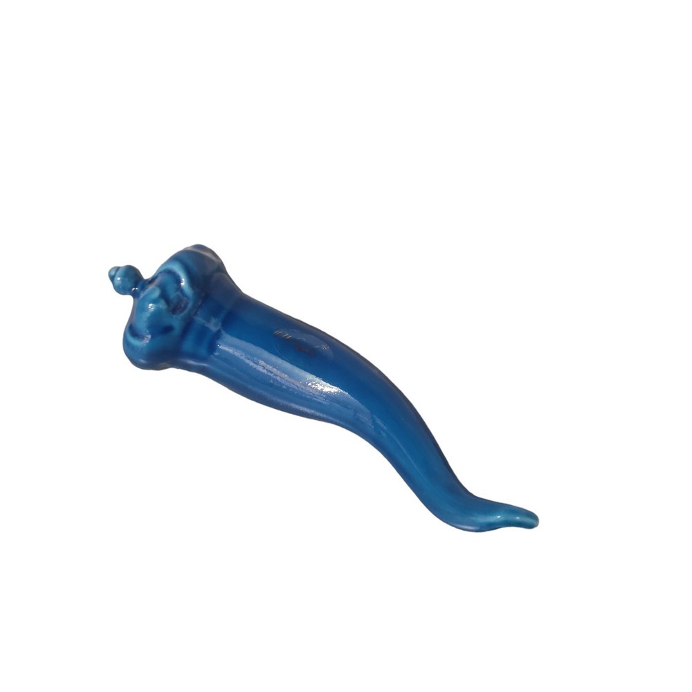 Corno di colore blu con foro sul retro da appendere.
