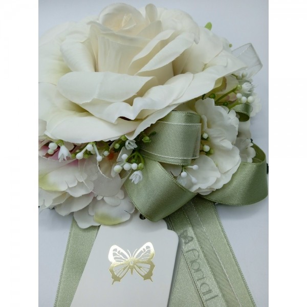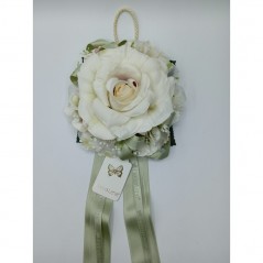 Appendino con Rosa Avorio e Nastri Verde Salvia Fiori di Lena