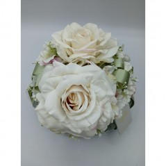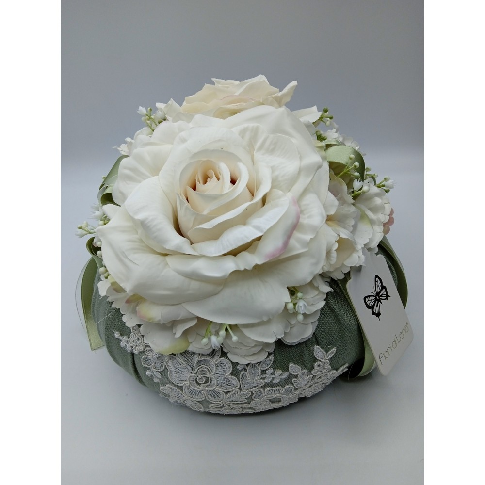 Puff Lino Verde Salvia e Pizzo con Due Rose Avorio Fiori di Lena