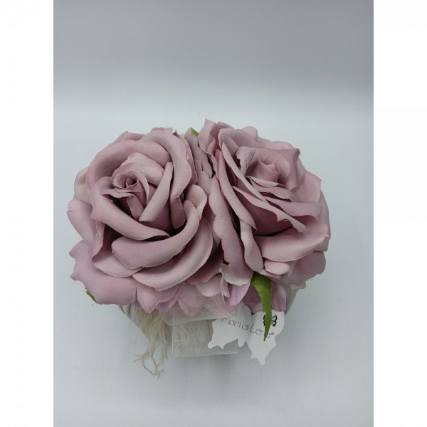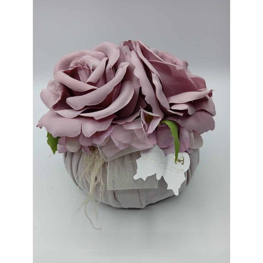 Puff Velluto Lilla con Due Rose Fiori di Lena
