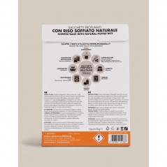 MODO D’USO: Ogni sacchetto è avvolto in una busta trasparente ad alta protezione per evitare che il profumo si disperda prima dell’utilizzo. Estrai sempre il sacchetto dalla bustina trasparente prima dell’uso. Non porre a stretto contatto con i capi. Non utilizzare in macchina lavasciuga.
