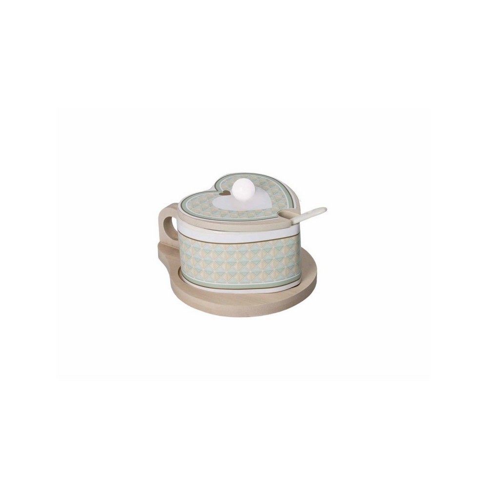 Scatola Diamantino con Cucchiaino Porcellana e Supporto Bamboo Brandani