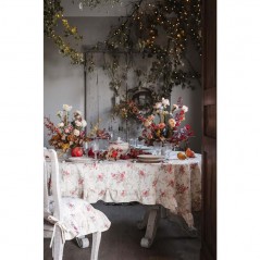 Deliziosa tovaglia Primo Bacio di Blanc Mariclò perfetta da utilizzare anche come romantico copritavolo, arricchito da una bella balza su tutti e quattro i lati.