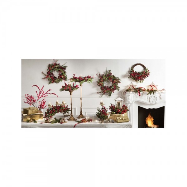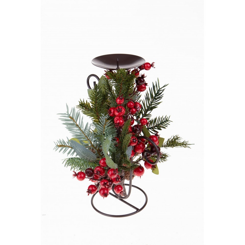 Candeliere Metallo Con Pigne e Bacche Brandani